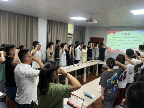 “我志愿加入中国共产党,拥护党的纲领,遵守党的章程……随时准备为党和人民牺牲一切,永不叛党。”全体党员在学生党员桑正昊同志的带领下,面向鲜红的党旗,重温入党誓词,一句句铮铮誓言,时刻提醒着党员同志们,牢记誓言,坚守信念,不忘初心。