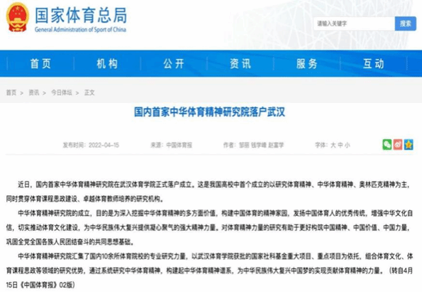 2022年年初,我校成立了中华体育精神研究院,黄莉教授出任院长。中华体育精神研究院的成立,在全国体育学界引发了热切关注,体育主流媒体和十余家新媒体进行了密集报道,这鼓舞着中华体育精神研究院要产出更好的研究成果以回报体育学界和媒体的厚爱。