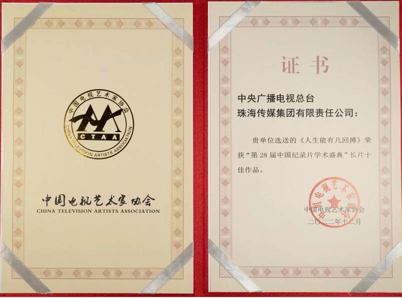 2023年1月8日晚,第28届中国纪录片学术盛典在深圳成功举办。这是国内纪录片参评数量最多、规模最大、规格最高的评选活动。体育纪录片《人生能有几回搏》在此次盛会上荣获中国纪录片国家奖,是中央广播电视总台、珠海电视台、武汉体育学院等各参与单位共同努力的结果,也是我国体育界所展现的中华体育精神在社会上、专业学术上获得认可的一次高规格证明!
