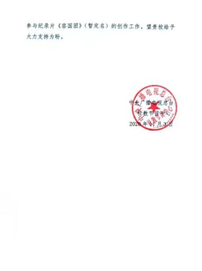 图3 中央广播电视总台邀请黄莉教授参与纪录片创作的函