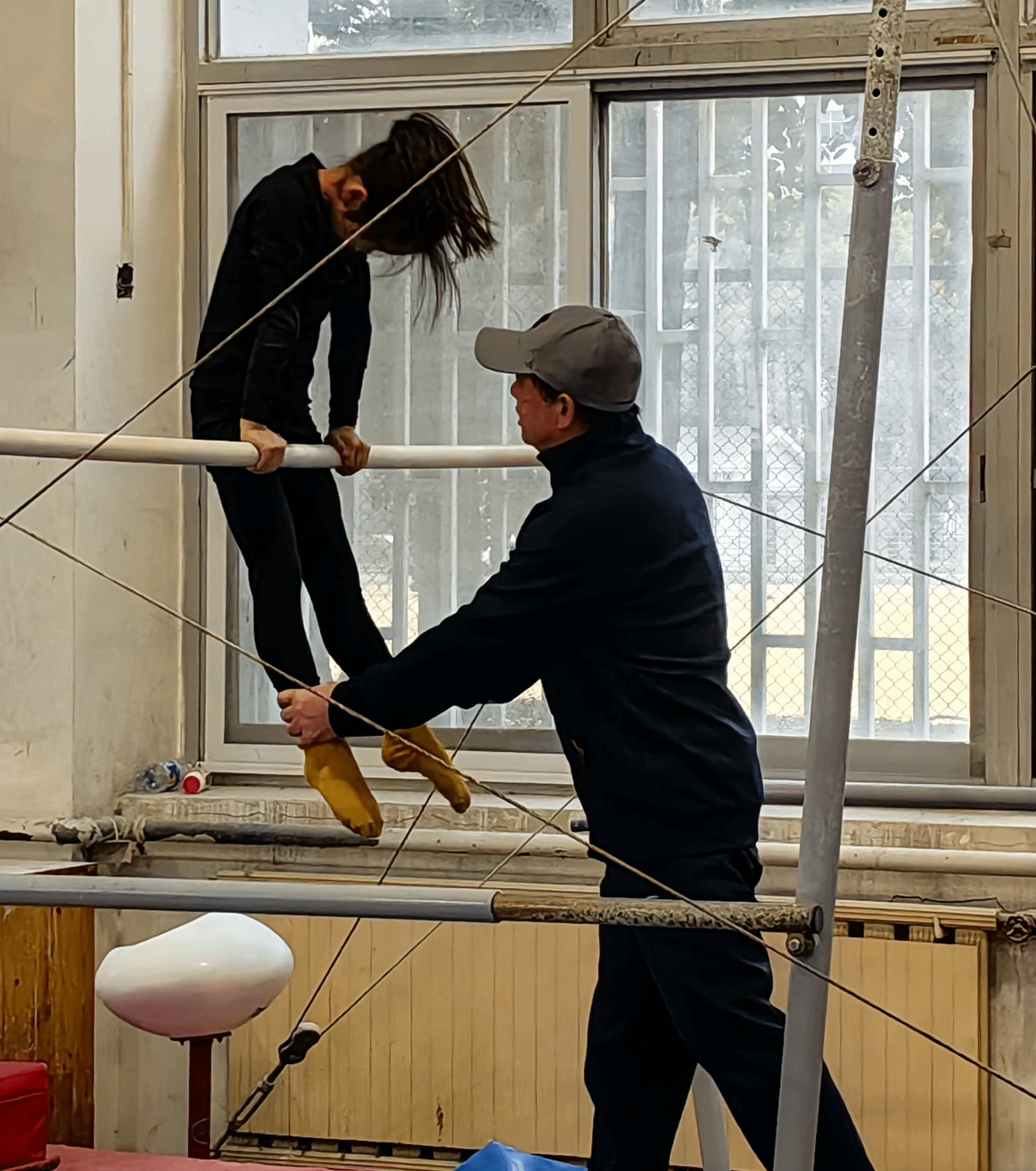 随后,熊指导基于少年儿童体操运动员和体操专项大学生的教学、训练需求,主要从自由体操、高低杠两个项目中,选取了趋步、踺子、前手翻、后手翻、长振屈伸上、蹬杠弧形下、大回环等关键基本技术动作进行了教法授课。他从动作技术要点、技术原理和练习步骤进行了精细的讲解,并针对运动员的技术动作、青年教练员保护与帮助中存在的问题进行了深入的讲解与分析;讲课中,他提出了“训练有方法、辅助有手段”“素质能力先行,辅助开路”等训练理念和要求,他精湛的教法技艺,耐心细致的技术讲解以及幽默风趣的授课方式给大家留下了深刻印象。期间,熊指导与青年教练、大学生和研究生们进行了热烈互动与交流,针对师生们提出的“蹬杠弧形下教法”“大回环辅助练习”“后手翻练习方法”等问题进行了耐心和专业的讲解。
