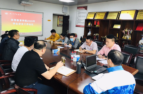 新闻网讯(通讯员赵欣)10月14日下午三点,体育教育学院在学院会议室召开2020年学生安全工作会议,体育教育学院院长魏旭波、副院长王云涛、党委副书记吴迪,全体辅导员参加会议。会议由党委副书记吴迪主持。