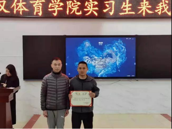 会上,由武汉体育学院实习指导教师沈磊向湖南怀化师大附中体育部组长颁发聘书。随后,体育部组长谢松老师对实习生提出了几项具体要求,并根据专项分配实习指导教师,要求实习开始的第一周实习生们首先了解学校的教育教学概况,熟悉学校环境,在此期间需要跟随实习指导教师听课5-10节,认真做好听课笔记,在指导教师的指导下学习备课、写教案。