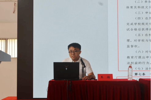 10月11日上午,体育教育学院党委副书记、副院长王瀚为新生作大学生行为规范主题讲座。王书记详细解读了学业预警机制,重点强调了违纪处分的相关规定,并梳理了学生管理的各项规章制度,旨在帮助新生尽快了解并适应大学的各项规定。讲座加深了新生对“规则”的理解,引导学生将外在约束内化为自身的行动自觉。